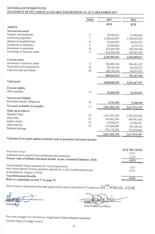 The Board of Trustees of Seychelles Pension Fund have the pleasure to submit the Audited Financial Statements for the year 2017 to its esteemed members: