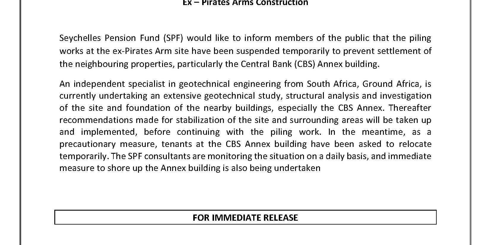 Ex – Pirates Arms Construction